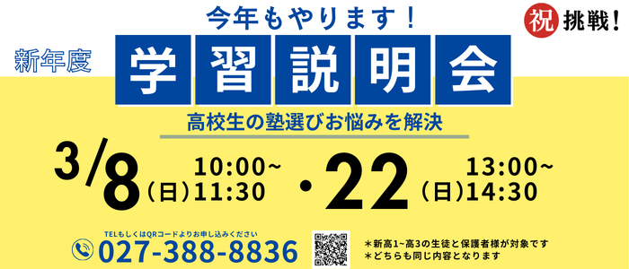 県立高校入試が実施される間の、家庭学習期間、これはライバルと差をつけるチャンスです! 高2・高3になる直前のみ…