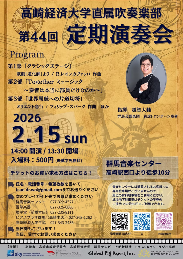 2月15日(日)に予定されている「高崎経済大学直属吹奏楽部 第44回 定期演奏会」にマストが協賛しています!