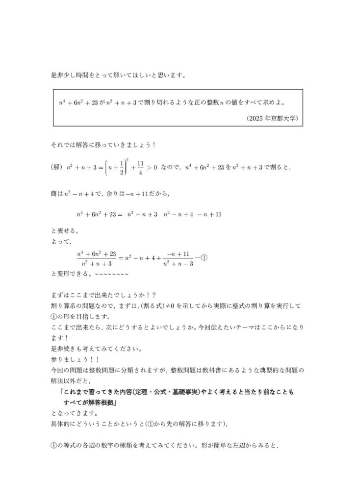 こんにちは。マスト数学科講師の横谷です。今回は以下の問題について, そのテーマの解説をしていきたいと思います。