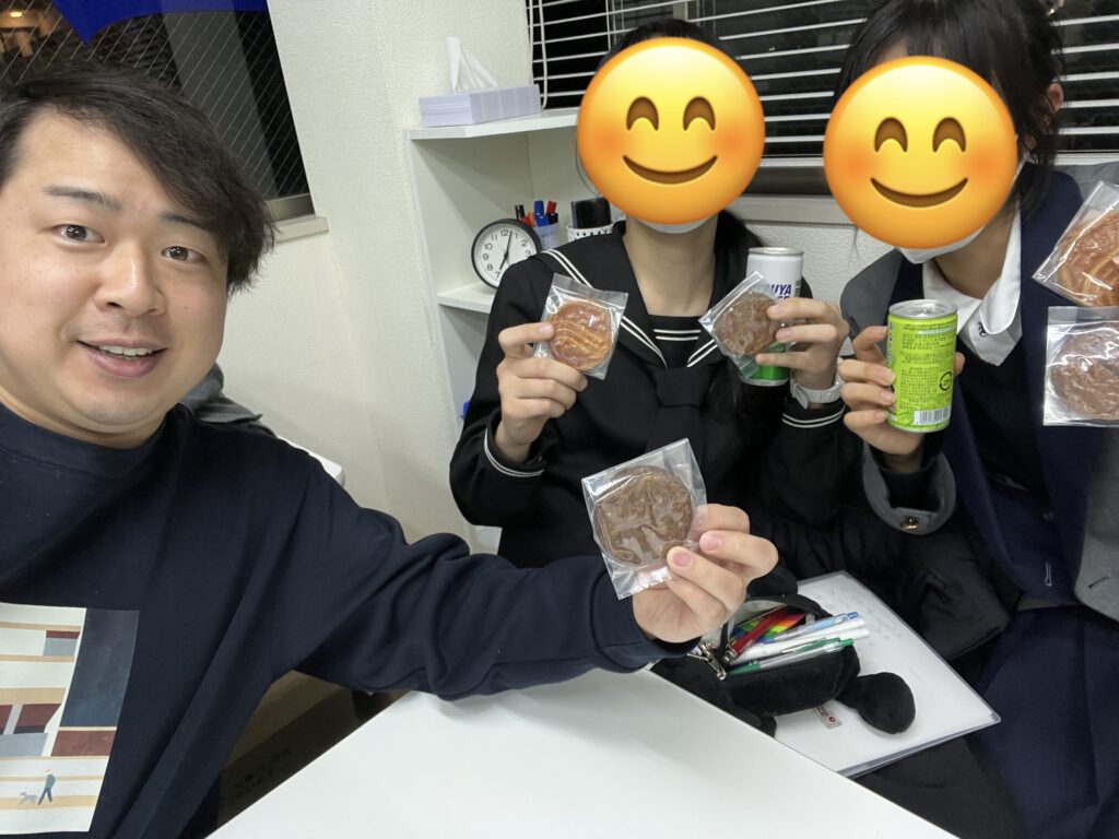 近くにとても美味しいお菓子屋さんがあるので、頑張っている生徒たちに差し入れました😊